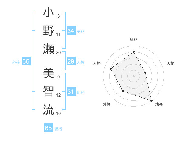 小野瀬 美智流さんを姓名の画数から五運を鑑定