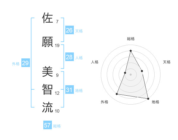 佐願 美智流さんを姓名の画数から五運を鑑定
