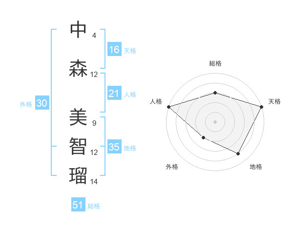 中森 美智瑠さんを姓名の画数から五運を鑑定
