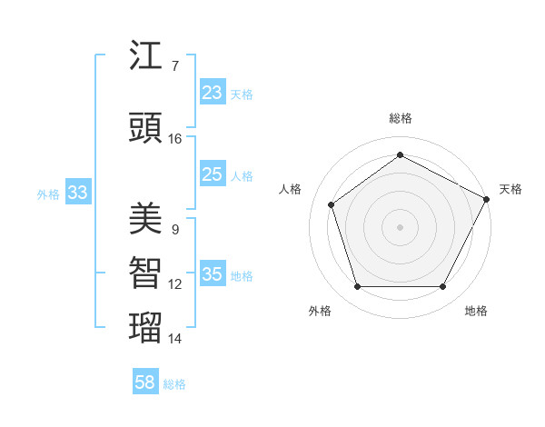 江頭 美智瑠さんを姓名の画数から五運を鑑定