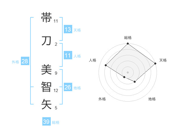 帯刀 美智矢さんを姓名の画数から五運を鑑定