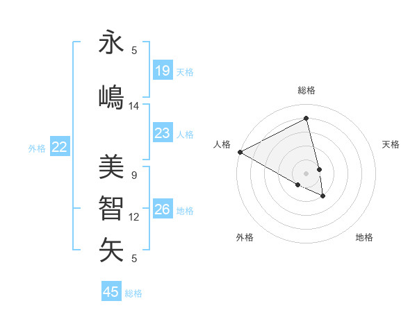 永嶋 美智矢さんの総格は45画の4点!