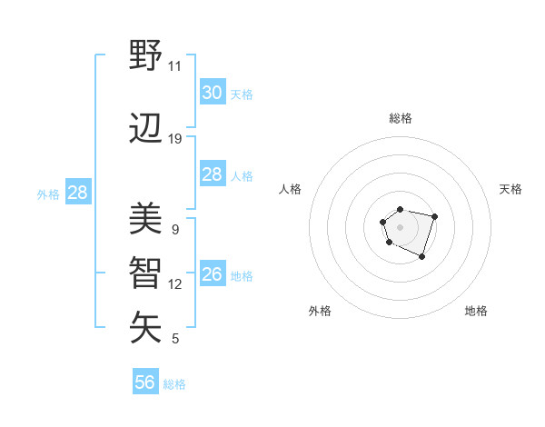 野辺 美智矢さんの総格は56画の1点!
