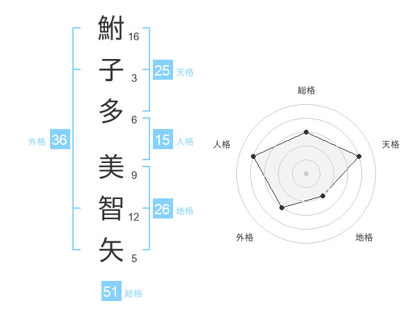 鮒子多 美智矢さんを姓名の画数から五運を鑑定