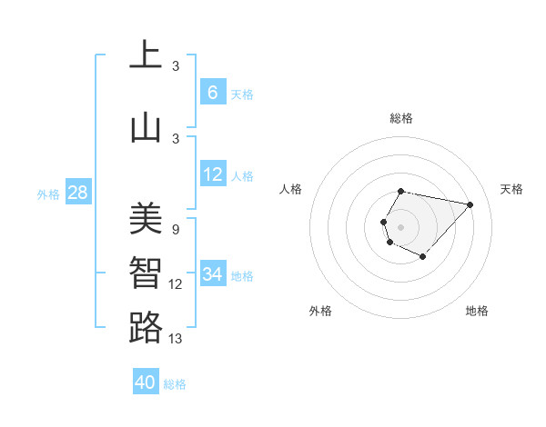 上山 美智路さんの総格は40画の2点!
