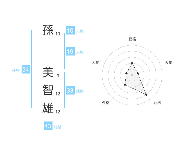 孫 美智雄さんの総格は43画の2点!