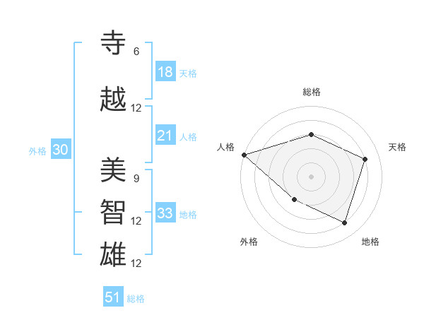 寺越 美智雄さんを姓名の画数から五運を鑑定