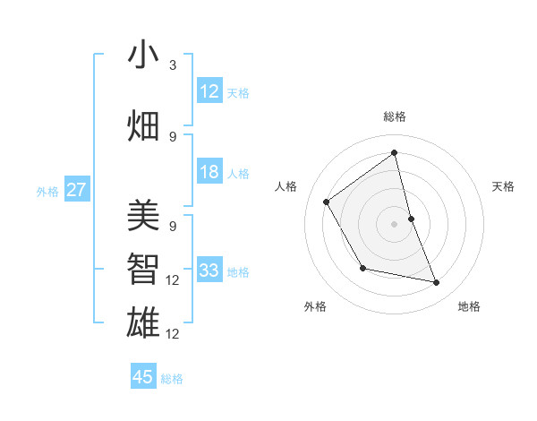 小畑 美智雄さんを姓名の画数から五運を鑑定
