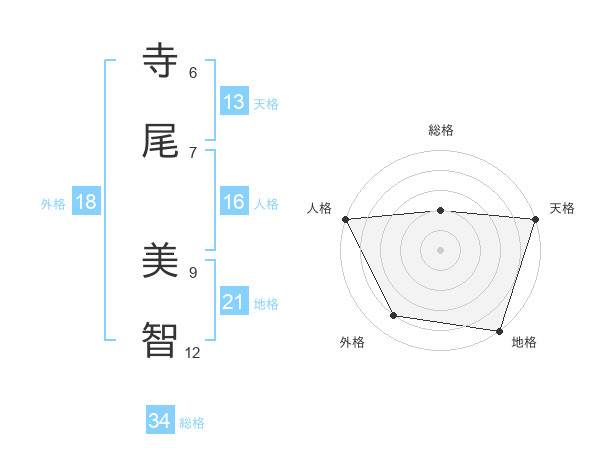 寺尾 美智さんを姓名の画数から五運を鑑定