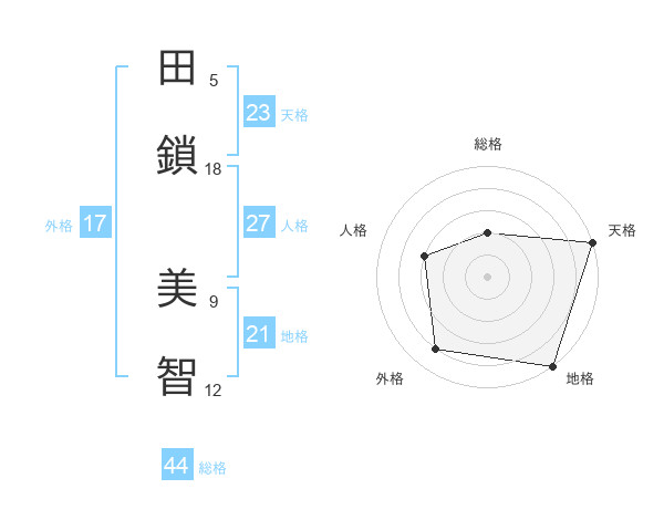 田鎖 美智さんの総格は44画の2点!