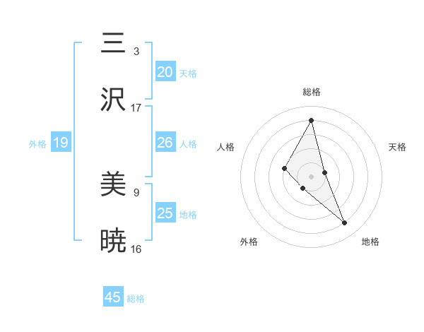 三沢 美暁さんの総格は45画の4点!