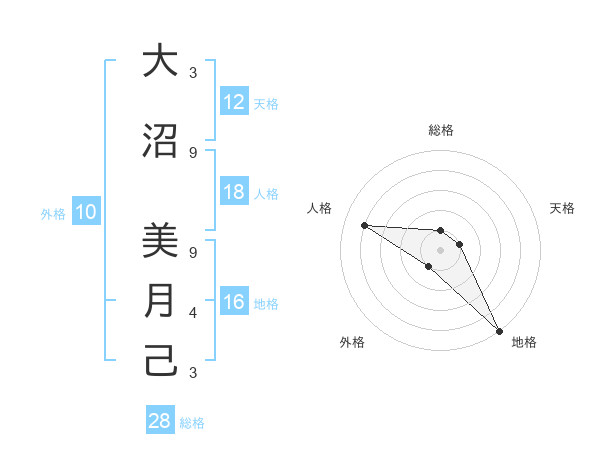 大沼 美月己さんを姓名の画数から五運を鑑定
