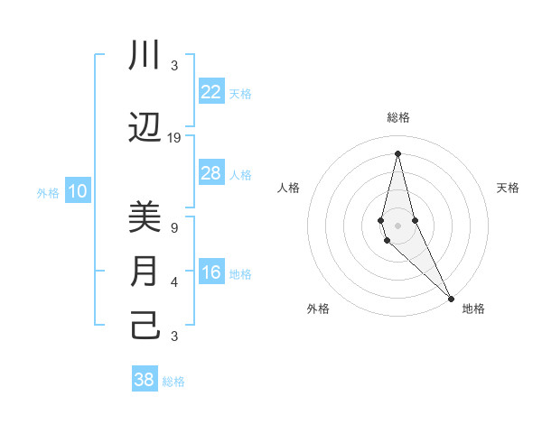 川辺 美月己さんを姓名の画数から五運を鑑定
