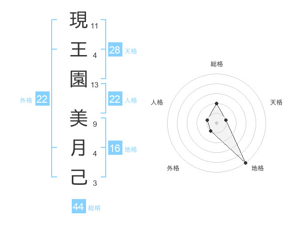 現王園 美月己さんの外格は22画の1点!