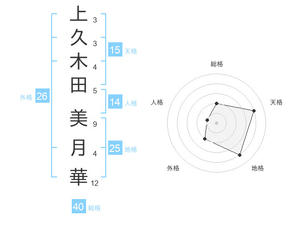 上久木田 美月華さんの地格は25画の4点!