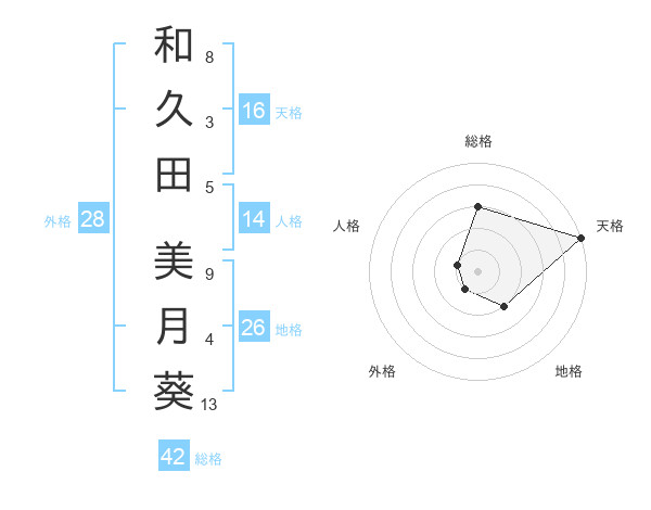 和久田 美月葵さんを姓名の画数から五運を鑑定