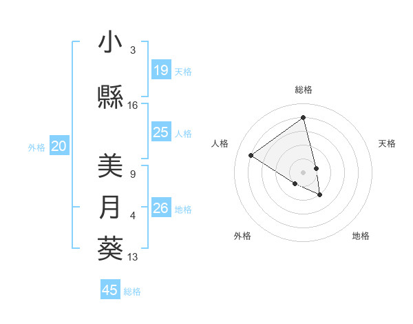 小縣 美月葵さんの総格は45画の4点