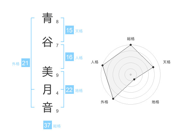 青谷 美月音さんの総格は37画の5点!