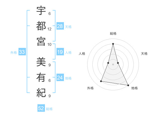 宇都宮 美有紀さんを姓名の画数から五運を鑑定