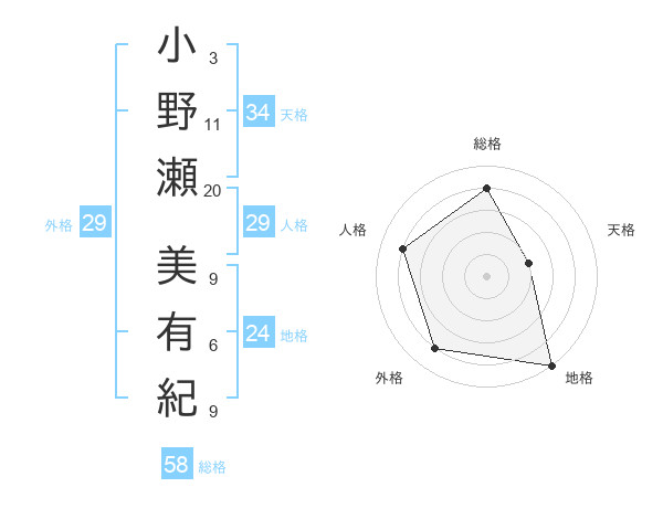 小野瀬 美有紀さんの総格は58画の4点
