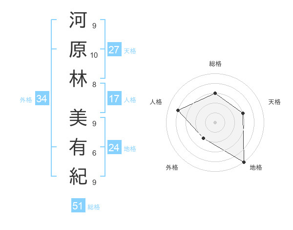 河原林 美有紀さんを姓名の画数から五運を鑑定