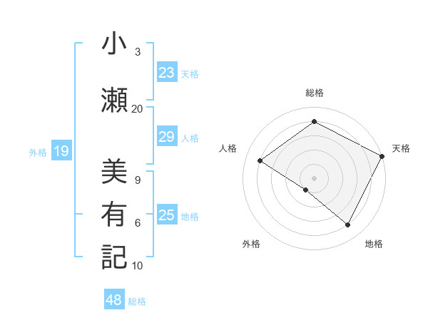 小瀬 美有記さんを姓名の画数から五運を鑑定
