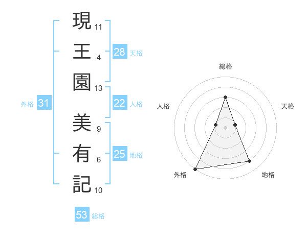 現王園 美有記さんを姓名の画数から五運を鑑定