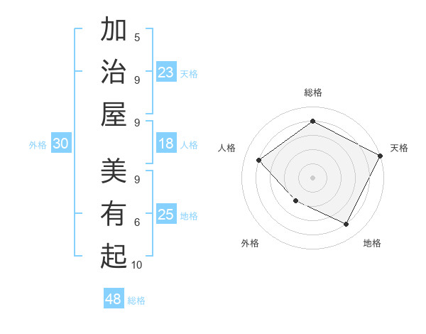 加治屋 美有起さんの天格は23画の5点!