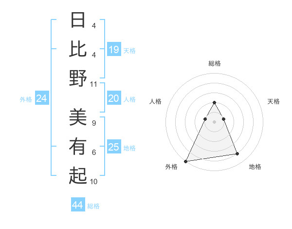 日比野 美有起さんを姓名の画数から五運を鑑定
