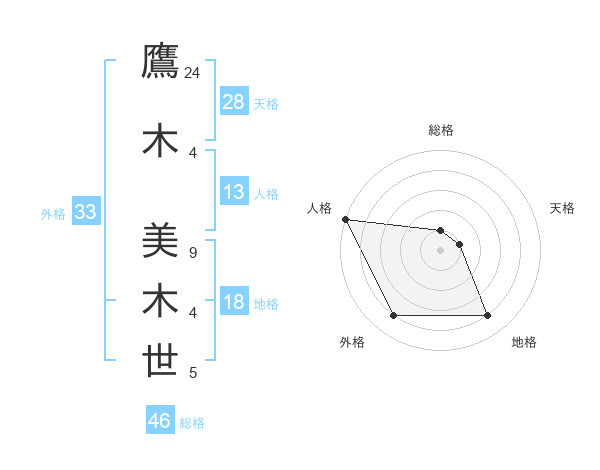 鷹木 美木世さんを姓名の画数から五運を鑑定