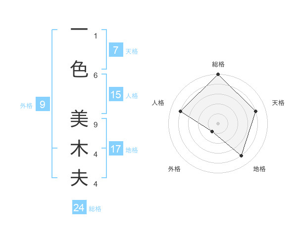 一色 美木夫さんの総格は24画の5点!