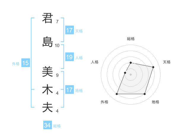 君島 美木夫さんを姓名の画数から五運を鑑定