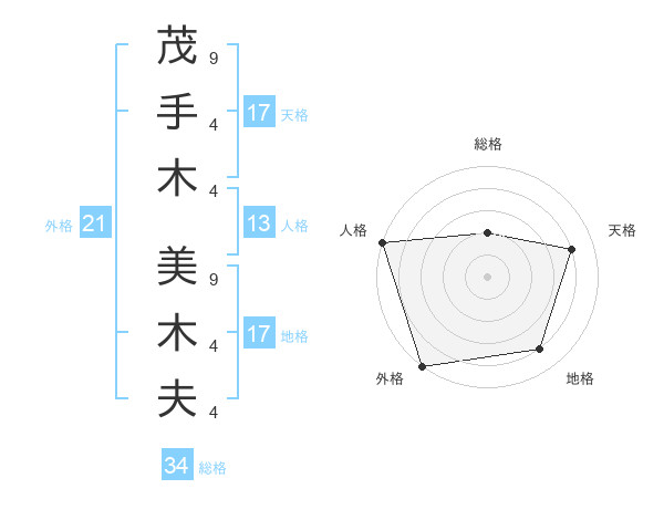 茂手木 美木夫さんの外格は21画の5点