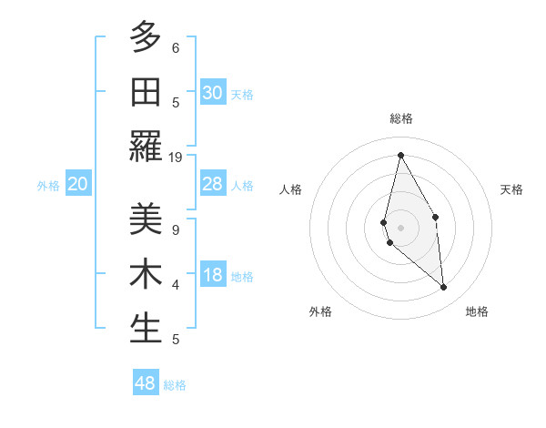 多田羅 美木生さんの総格は48画の4点!