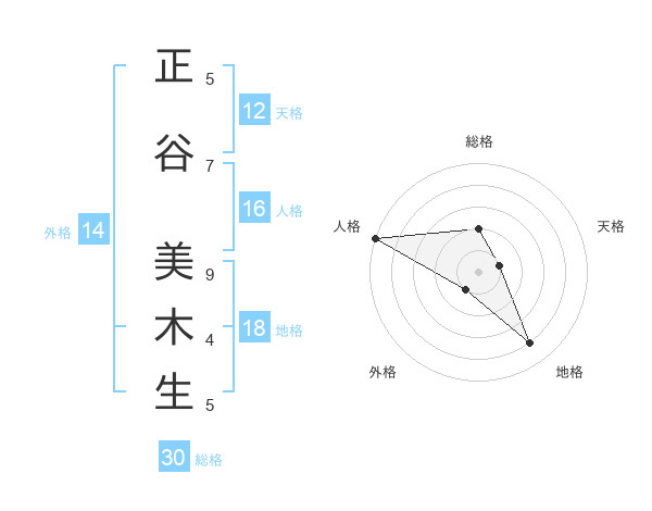 正谷 美木生さんの天格は12画の1点!
