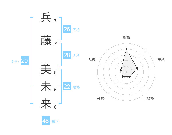 兵藤 美未来さんの総格は48画の4点!