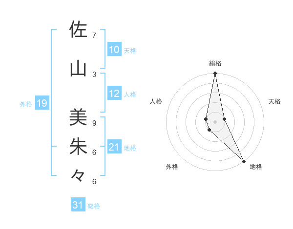 佐山 美朱々さんを姓名の画数から五運を鑑定