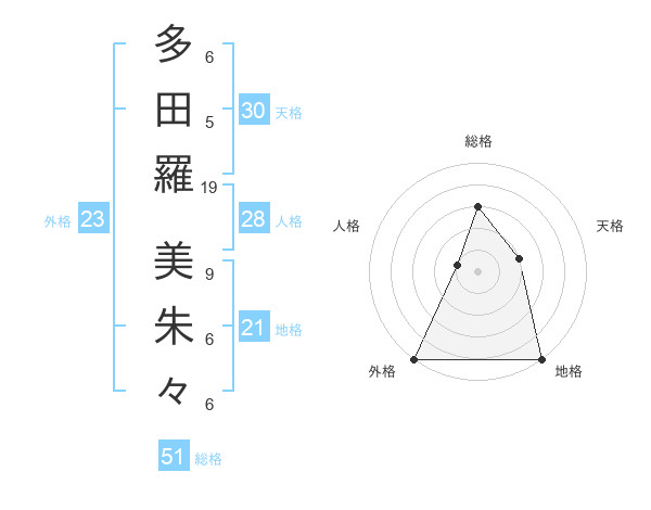 多田羅 美朱々さんを姓名の画数から五運を鑑定