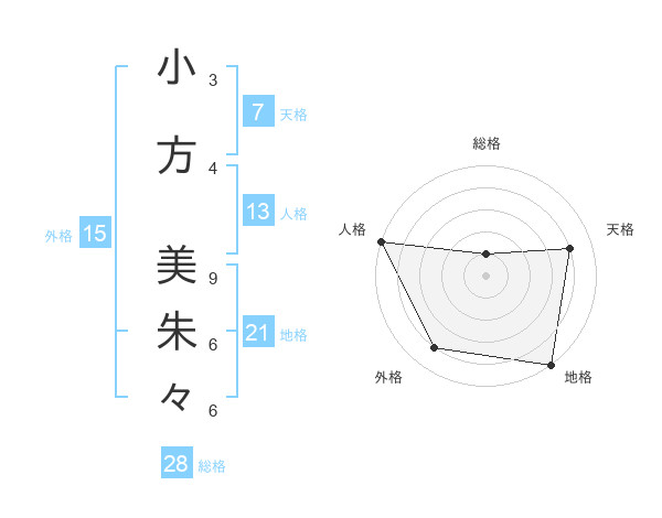 小方 美朱々さんを姓名の画数から五運を鑑定