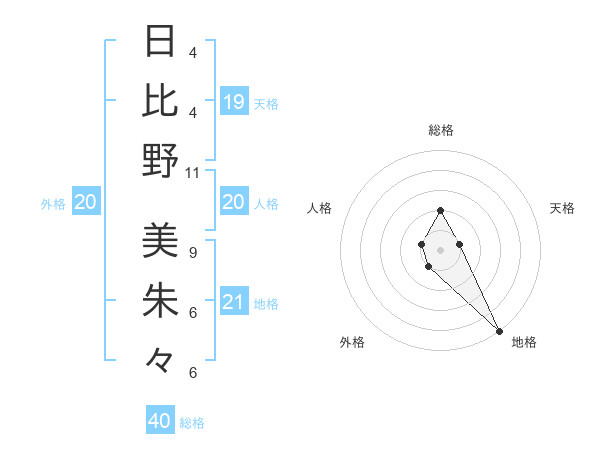日比野 美朱々さんの天格は19画の1点!