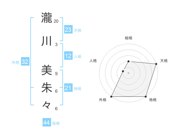 瀧川 美朱々さんを姓名の画数から五運を鑑定