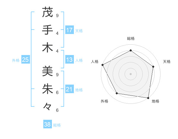 茂手木 美朱々さんの総格は38画の4点!