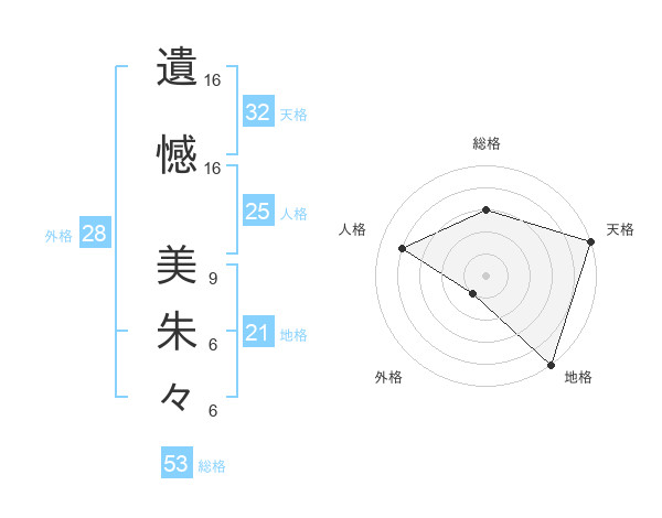 遺憾 美朱々さんを姓名の画数から五運を鑑定
