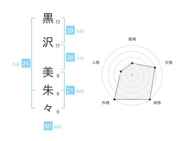 黒沢 美朱々さんを姓名の画数から五運を鑑定
