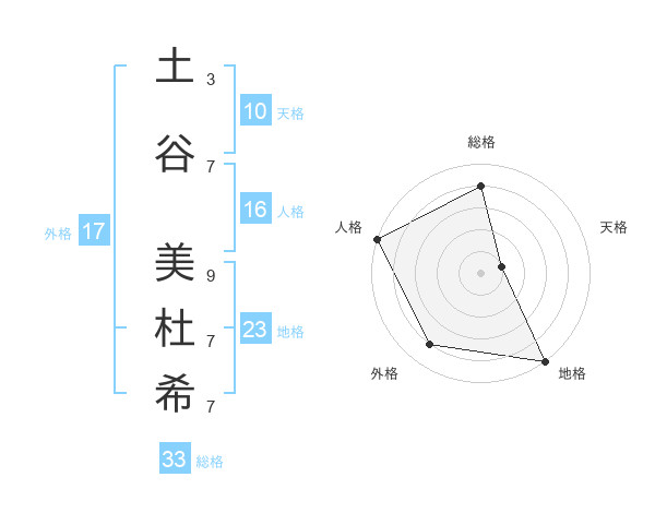 土谷 美杜希さんの総格は33画の4点!