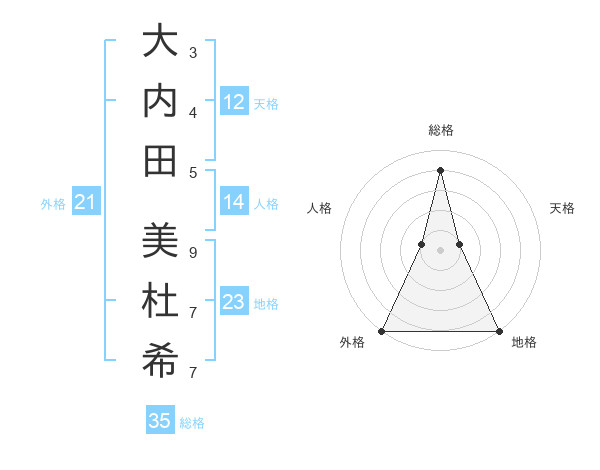 大内田 美杜希さんの外格は21画の5点