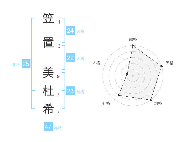 笠置 美杜希さんを姓名の画数から五運を鑑定