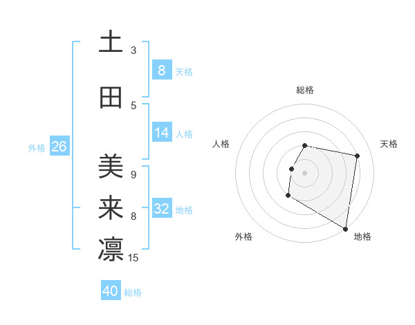 土田 美来凛さんを姓名の画数から五運を鑑定
