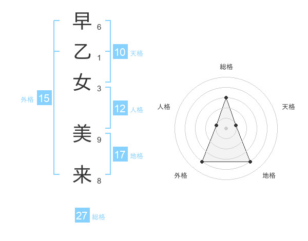 早乙女 美来さんを姓名の画数から五運を鑑定