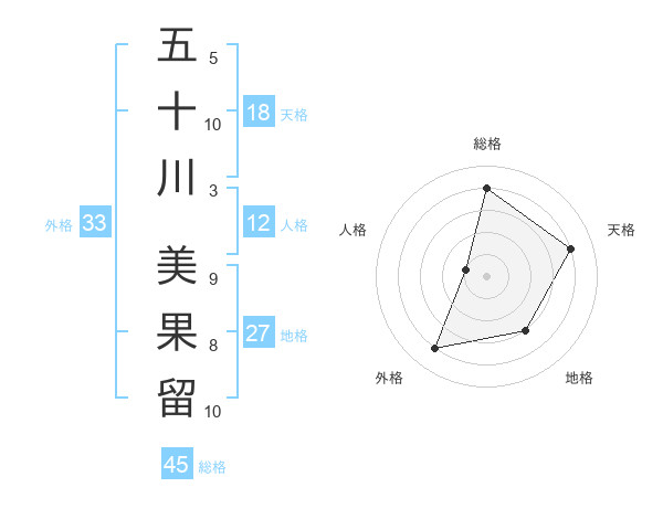 五十川 美果留さんの総格は45画の4点